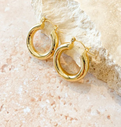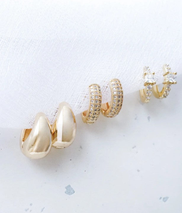 Add Lustre & Sage - Petit Diamanté 18K Gold Plated Huggies to the cart