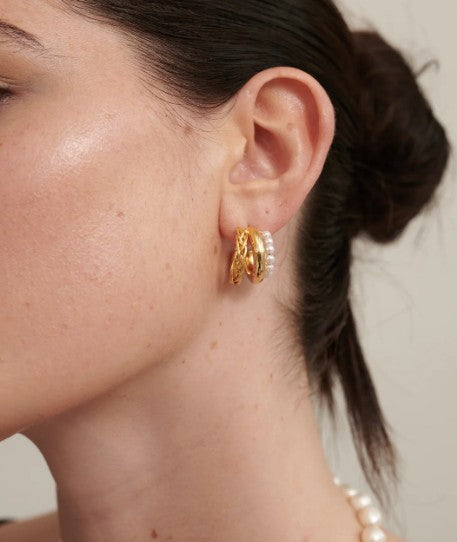Add LUSTRE & SAGE - Trio Pearl Layered 18k Gold Plated Earrings to the cart