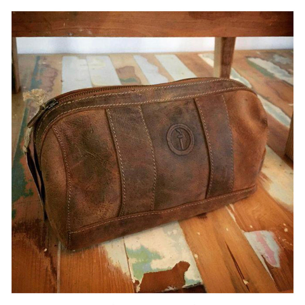 This leather toiletry bag really fits our ethos of simple. earthy. real. Don't let its good looks fool you. Size really does matter when it comes to fitting everything in! Designed with ample space for storage, all of your hygiene items can are accommodated for in this compact rustic toiletry bag.