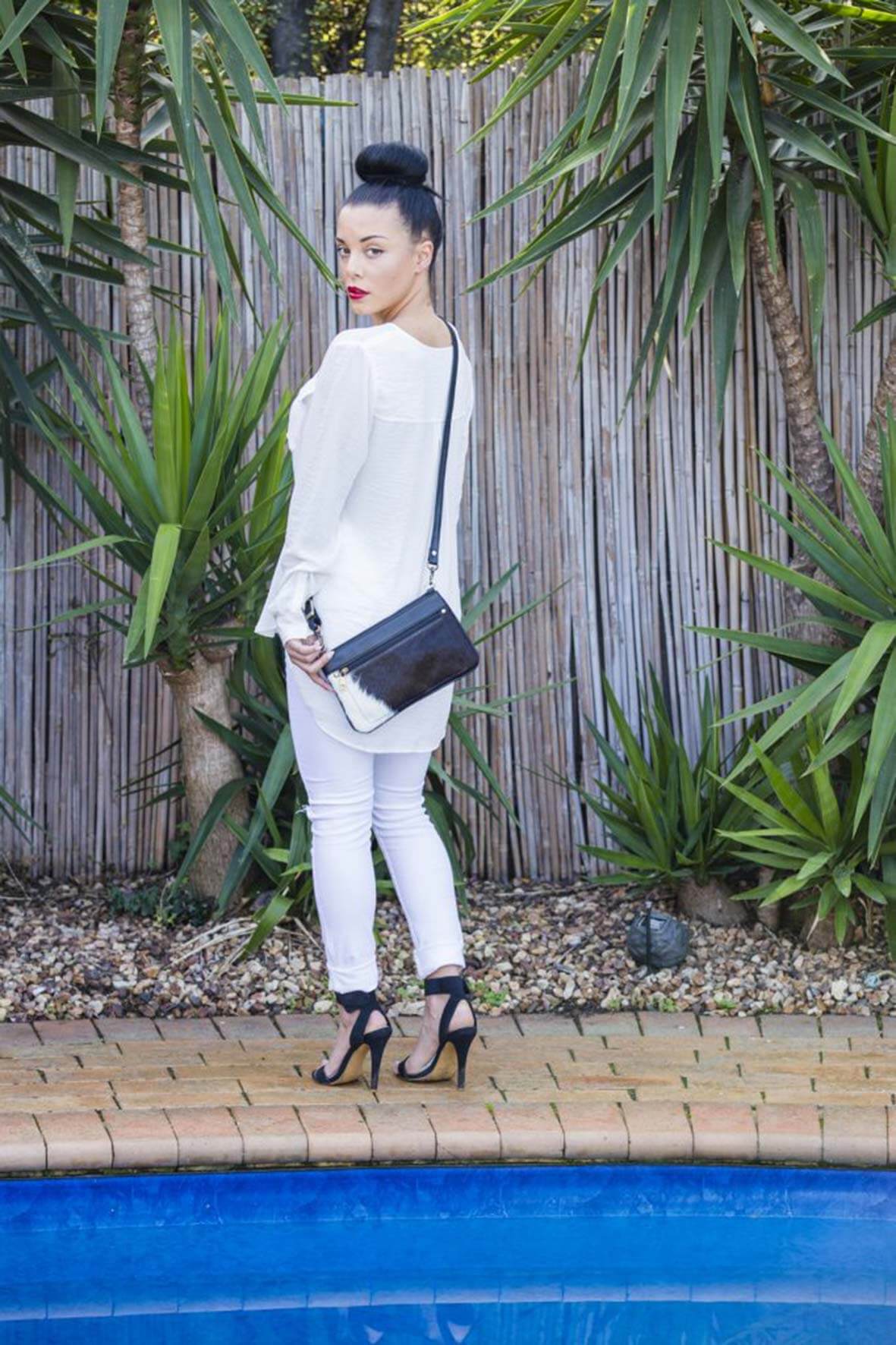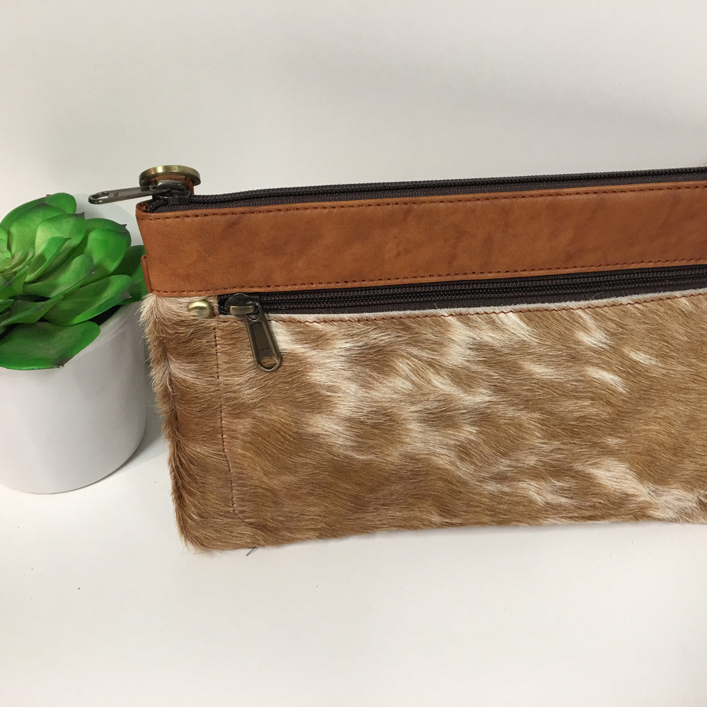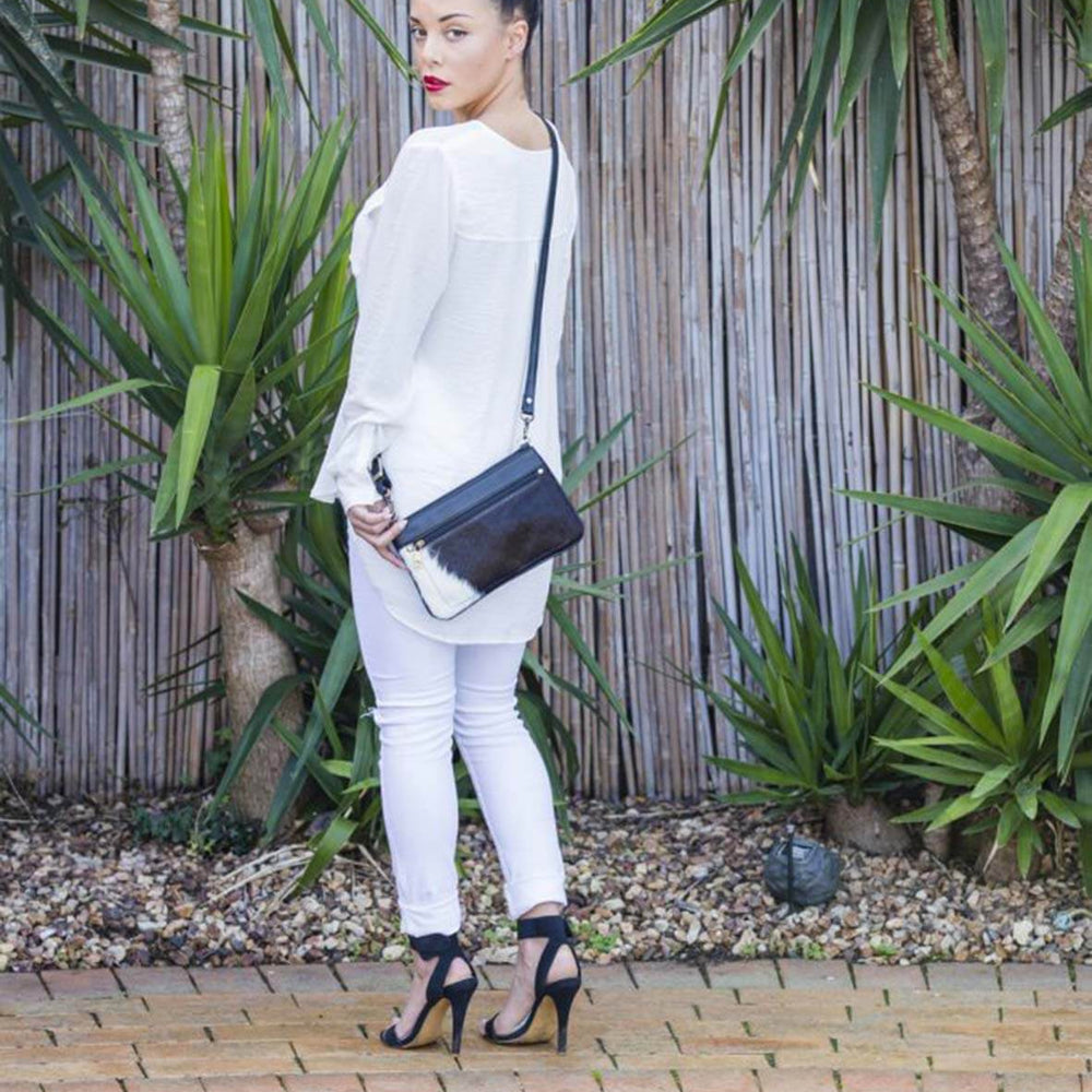 This zippered sling is a sophisticated partner with its structured style and classy look. A large clutch, perfect for holding your day time or evening essentials. It features detachable and adjustable genuine leather shoulder strap so can be worn as a shoulder bag, cross body bag and as a clutch. Main compartment has zipped closure plus external zipped pocket for extra storage.